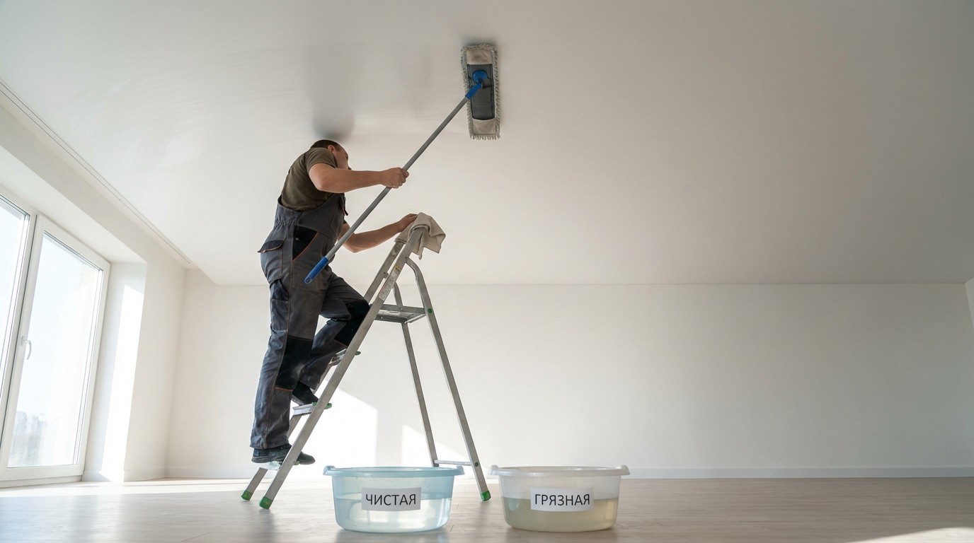 Основные ошибки при уходе за матовым потолком: сильный нажим, круговые движения, грязная вода, избыток моющего средства и плохо отжатая тряпка. Они оставляют полосы, растягивают плёнку и могут повредить швы.