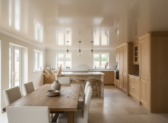 Преимущества бежевых потолков