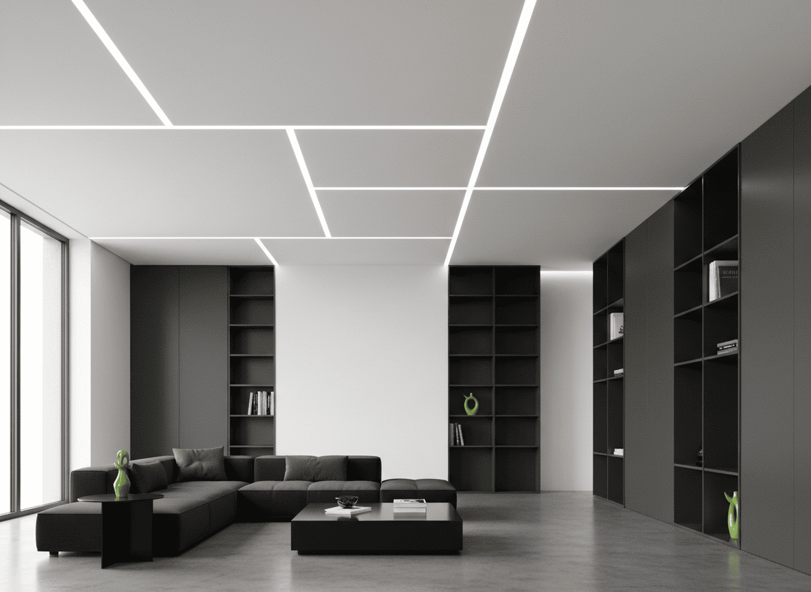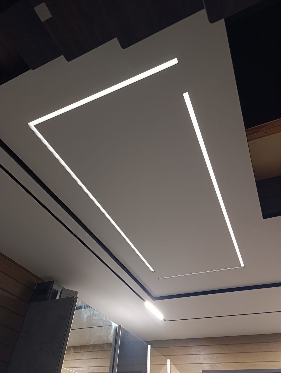 Световые линии — это встроенные линейные светодиодные конструкции, интегрированные в натяжной потолок. Они используются как основной источник света или декоративная подсветка. В зависимости от проекта подбираются профиль, ширина линии, цветовая температура и мощность. Мы предлагаем различные варианты световых линий: от минималистичных прямых до сложных геометрических композиций.