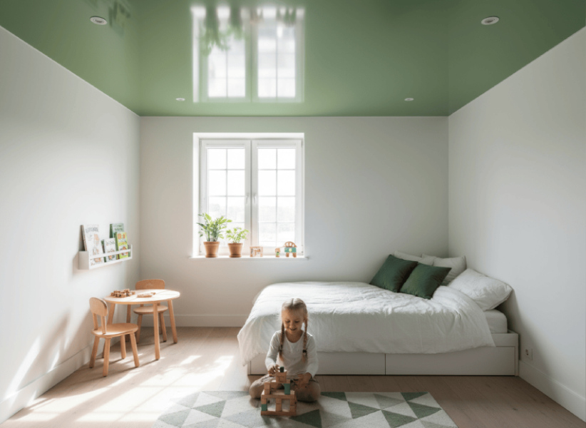 Говоря «зеленый натяжной потолок», мы предполагаем какой-либо из множества его стандартных оттенков. Среди них, например: