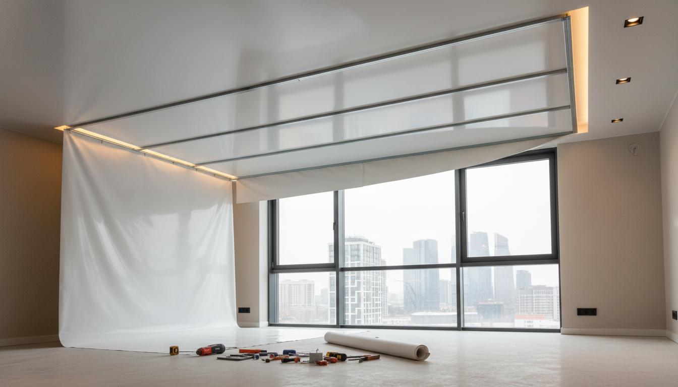Быстрая установка натяжных потолков.