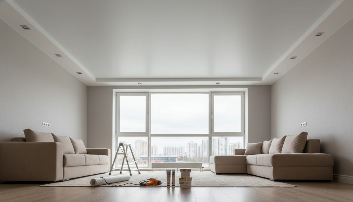 - Натяжные потолки в квартиру с установкой под ключ